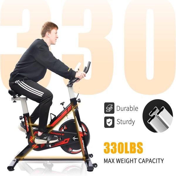Home > Exercise Stationary Bike 330 Lbs Weight Capacity, Spin Indoor Cycling Bike with LCD Monitor and Comfortable Seat Cushion for Home Gym Cardio Fitness T