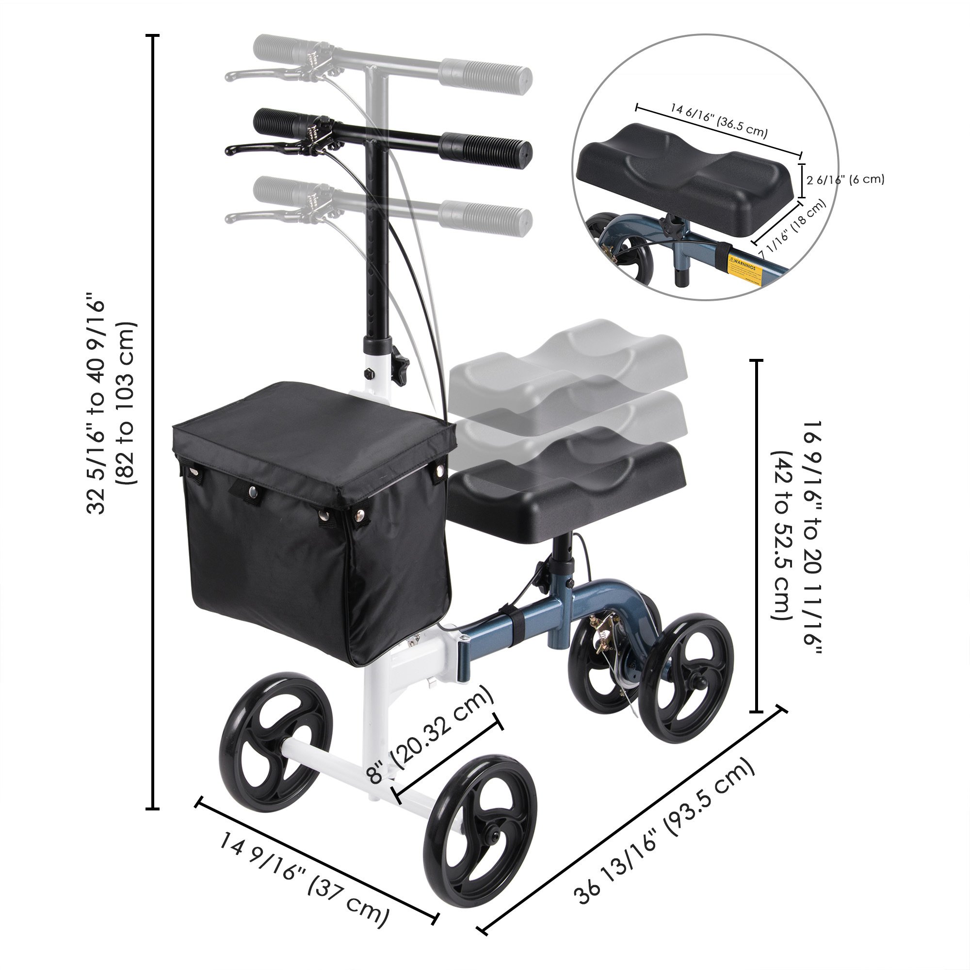 - Height Adjustable & Comfortable - Features an adjustable handlebar for adjusting height from 32 5/16" to 40 9/16"; along with an ergonomically designed soft PU knee platform from 16 9/16" to 20 11/16"; allowing you to place your leg both horizontally and vertically; suitable for both adults and children