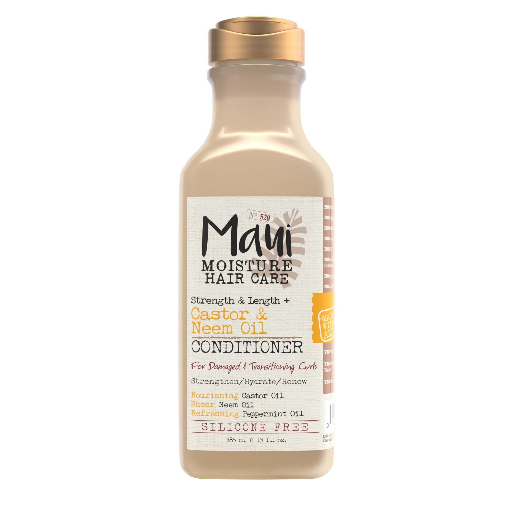 Maui Moisture Strength & Length + Castor & Neem Oil Conditioner starts with 100% aloe vera and is infused with castor oil, neem oil and peppermint oil to renew chemically damaged strands transitioning to a natural curl. Our vegan, silicone-free curly hair products strengthen and soften curls while hydrating and soothing the scalp.