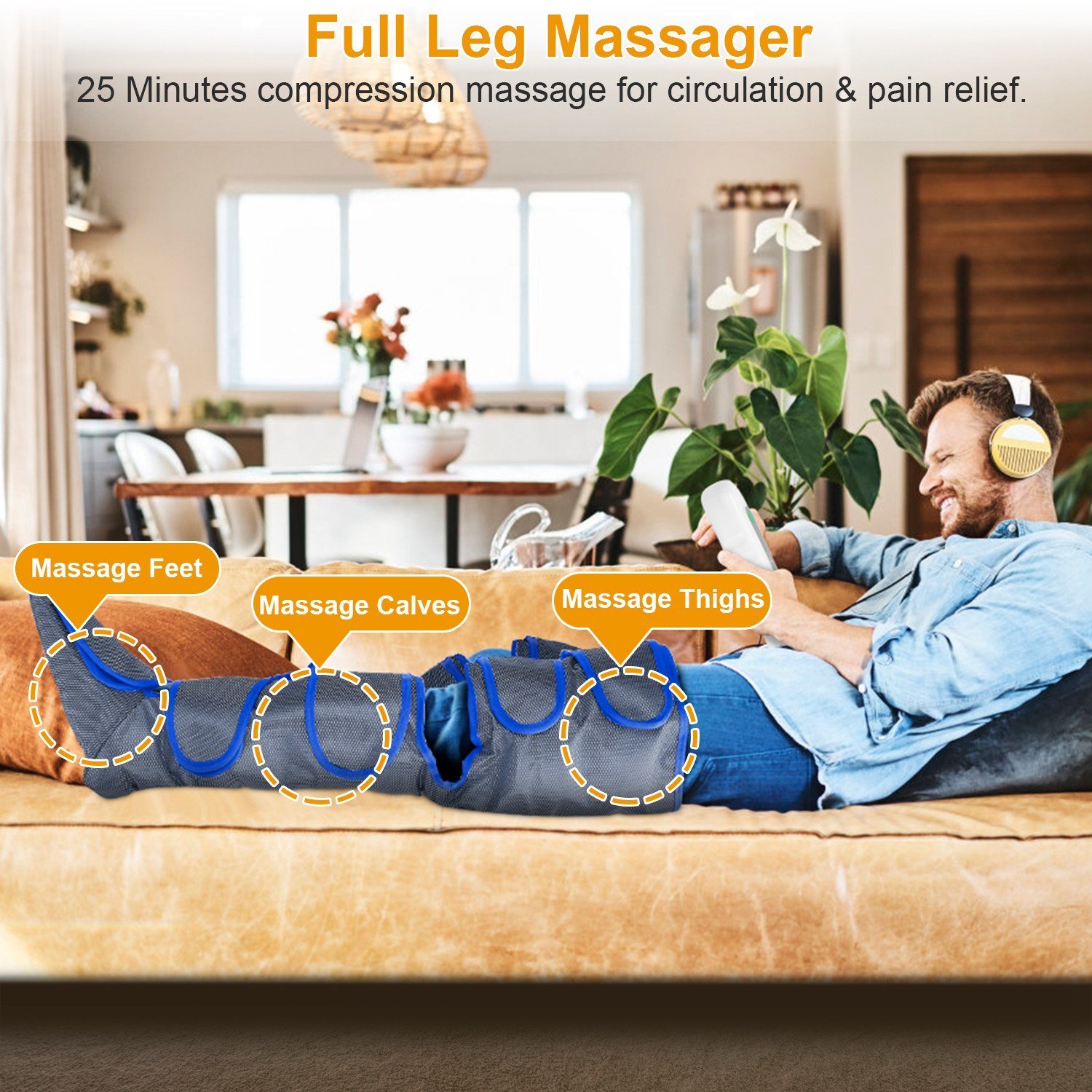 *Full-Round Massage From Thigh To Feet*:This Full Leg Circulation Massager can massage legs,calf and feet for relief and treatment,helping relieve fatigue and pain,improve circulation,providing a comfortable massage experience for you. 25Min auto shut off,safe and effective.